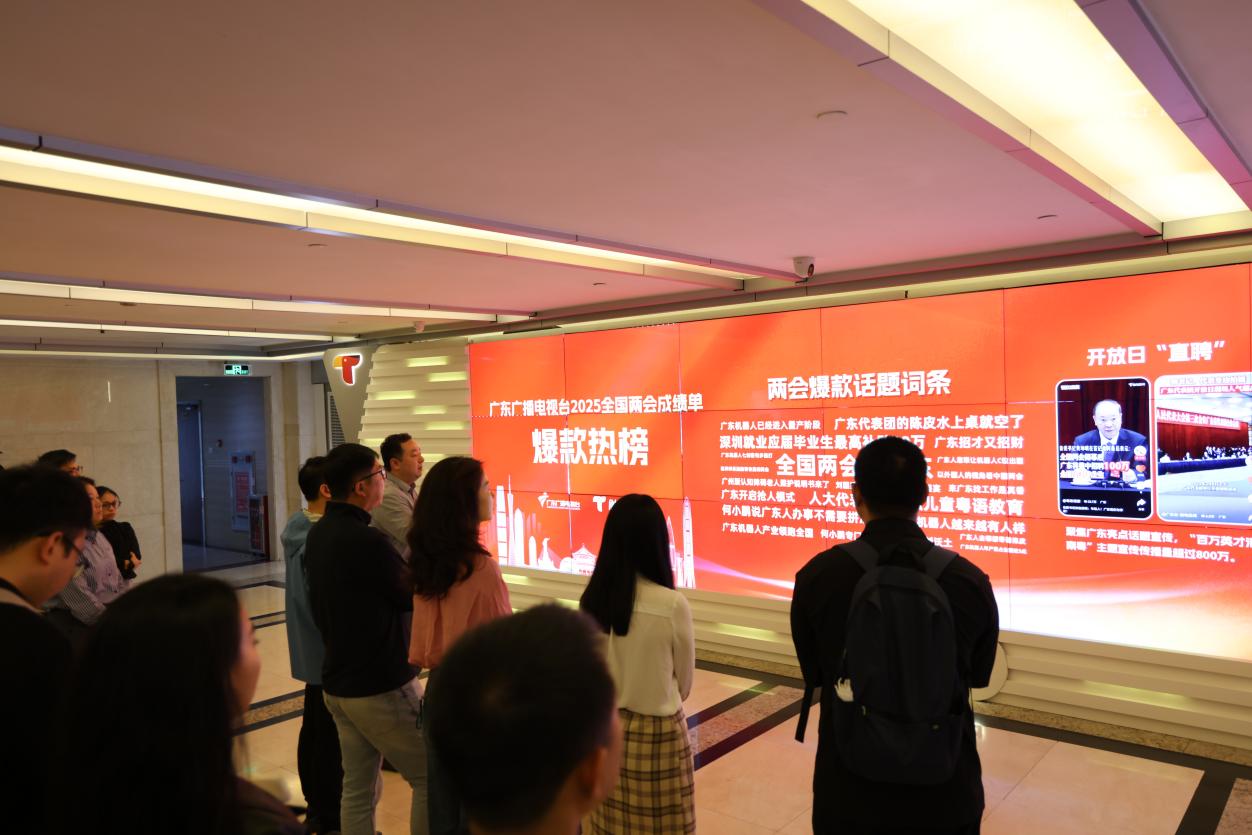 在环市东办公区,师生们重点参观了电视融媒中心现代化演播室,近距离观摩了新闻直播、节目录制的技术要点与流程设计,并参与了虚拟演播厅的实操体验,直观感受到科技对媒体生产的强大赋能。