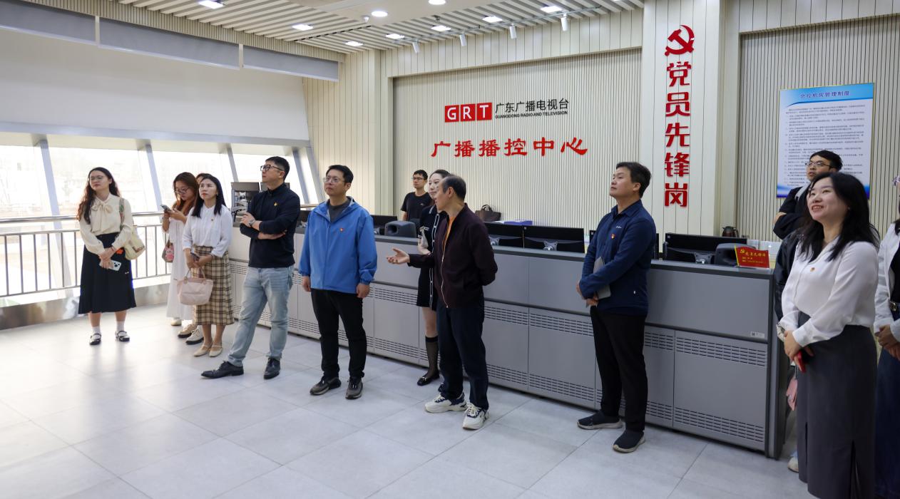 4月18日,为贯彻落实党的二十大和二十届二中、三中全会精神、习近平总书记视察广东重要讲话重要指示精神,学习贯彻全国和广东省教育大会精神和珠海市教育大会精神,深化校地党建合作,进一步加强校区宣传队伍建设,党委宣传工作办公室党支部组织校区宣传队伍师生代表赴广东广播电视台,与广东广播电视台广播制播部党支部、广东触电传媒科技有限公司党支部开展“校地党建共建,AI引领协同发展”党建共建和业务培训。本次活动以理论与实践结合的形式开展,师生们先后走进广东台环市东、人民北两大办公区,通过实地探访、技术讲解与互动交流形式,深入了解广播电视行业的尖端技术与媒体融合的最新发展成果。